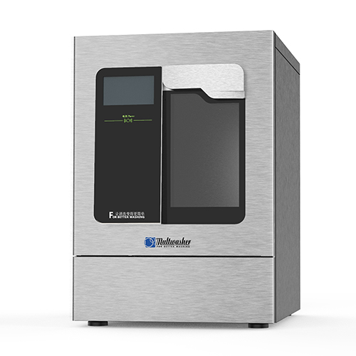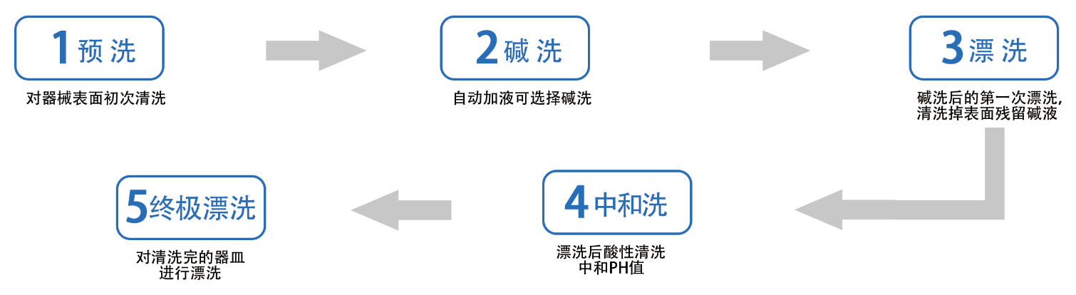 將實(shí)驗(yàn)室器皿裝載到器皿裝載籃架上通過滑軌載入清洗機(jī)內(nèi)腔中,通過清洗步驟去除器皿上的污染物(包括有機(jī)物、無機(jī)物、蛋白質(zhì)等),使器皿上的殘留物被清洗掉;通過漂洗步驟去除器皿上污染物和清洗劑殘留,使器皿上離子殘留量低于檢測下限,通過去除器皿上細(xì)胞、病毒、細(xì)菌殘留,使活微生物數(shù)量減少到規(guī)定水平。